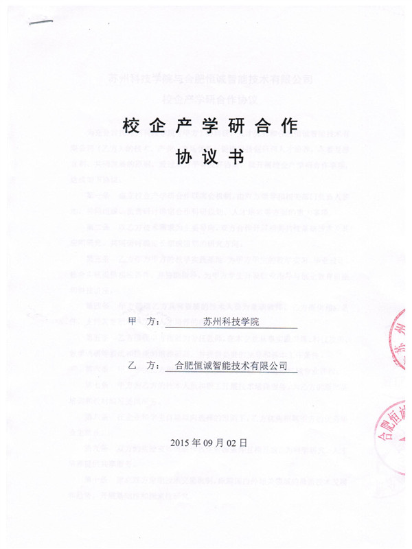 我公司于9月2日與蘇州科技學(xué)院就運(yùn)用知名高校人才、智能低氧的應(yīng)用、技術(shù)優(yōu)勢(shì)結(jié)合企業(yè)市場(chǎng)資源開(kāi)展產(chǎn)學(xué)研合作進(jìn)行探討,簽訂合作協(xié)議。