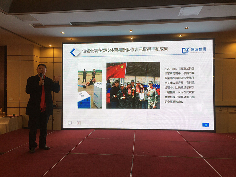 合肥恒誠智能技術(shù)有限公司林茂先總經(jīng)理受邀攜團隊出席并見證此次年度盛典。為了配合合肥馬協(xié)順利舉辦此次年會,助力“合肥馬協(xié),領(lǐng)跑2018”,恒誠智能團隊將公司高科技產(chǎn)品“智能化低氧體能呼吸訓(xùn)練系統(tǒng)”帶到了會議現(xiàn)場,并現(xiàn)場為協(xié)會最強戰(zhàn)隊提供專業(yè)的體能訓(xùn)練服務(wù)。