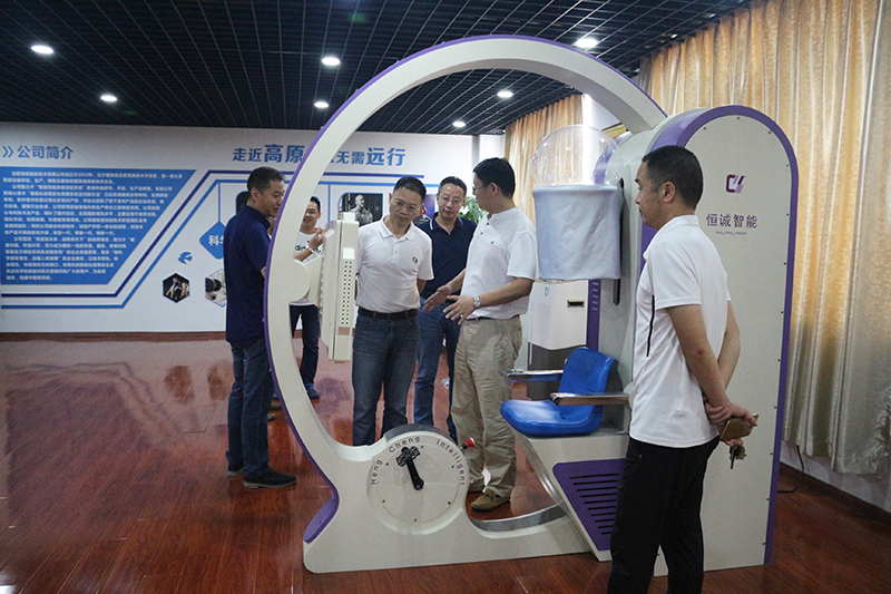 在林總的陪同下,戴忠林處長一行饒有興致的參觀了恒誠智能產(chǎn)品展示中心、低氧房裝置、低氧健身體驗中心;同時對低氧設(shè)備也作了詳細的體驗、考察,通過現(xiàn)場的積極互動與交流,對恒誠智能的智能化低氧呼吸訓練系統(tǒng)在未來競技體育領(lǐng)域也給予了很大的期許!