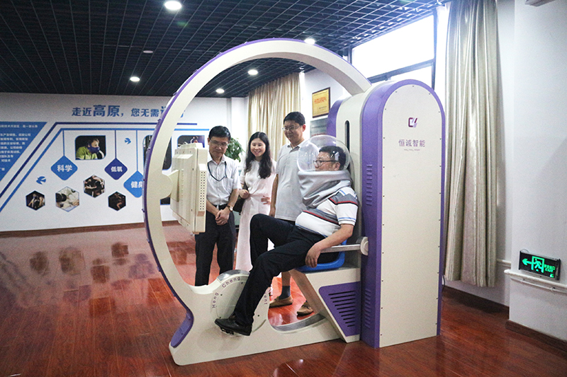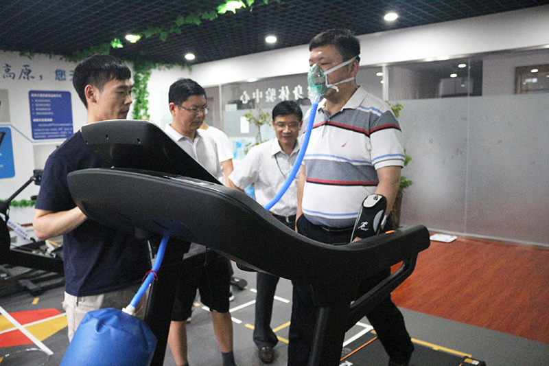 領(lǐng)導(dǎo)一行先后參觀了恒誠智能產(chǎn)品展示中心、低氧房裝置系統(tǒng)、低氧健身體驗(yàn)中心,通過公司員工的專業(yè)講解,更全面的了解了公司的低氧產(chǎn)品,對(duì)用科學(xué)的健身方法進(jìn)行低氧健身訓(xùn)練有了更深層次的理解,對(duì)公司填補(bǔ)了低氧領(lǐng)域的國內(nèi)空白、國際領(lǐng)先的科技技術(shù)給予了高度評(píng)價(jià),對(duì)公司的科技發(fā)展給予厚望。