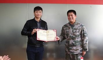 - 日前,中國人民解放軍陸軍某部隊副部隊長一行,專程來合肥恒誠智能公司,舉行頒旗儀式。 該部隊副部隊長代表陸軍某集團軍,為恒誠智能公司參與2017國際軍...