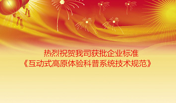 - 熱烈祝賀我司獲批企業(yè)標(biāo)準(zhǔn)《互動(dòng)式高原體驗(yàn)科普系統(tǒng)技